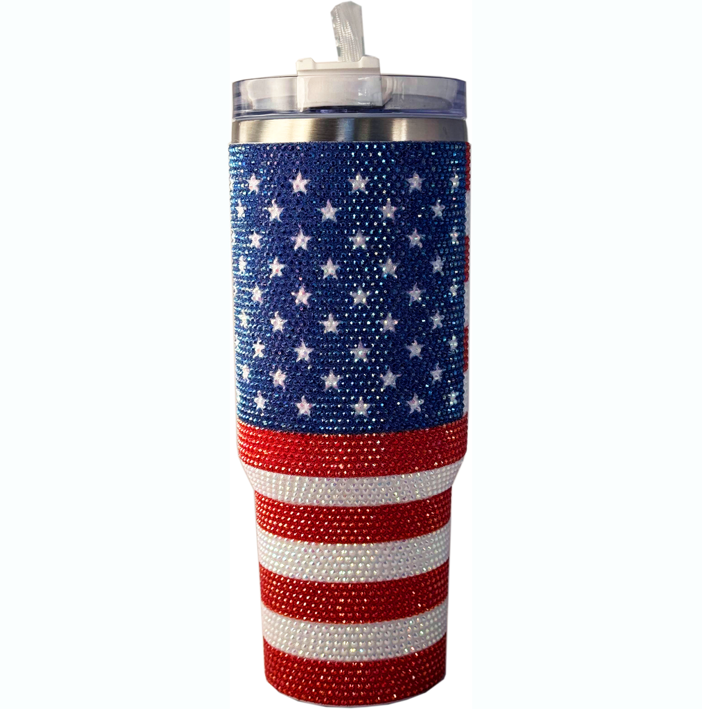 USA Flag Bling Tumbler – 40oz Sparkling Patriotic Hydration